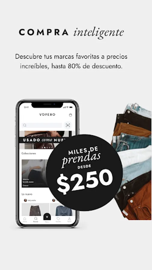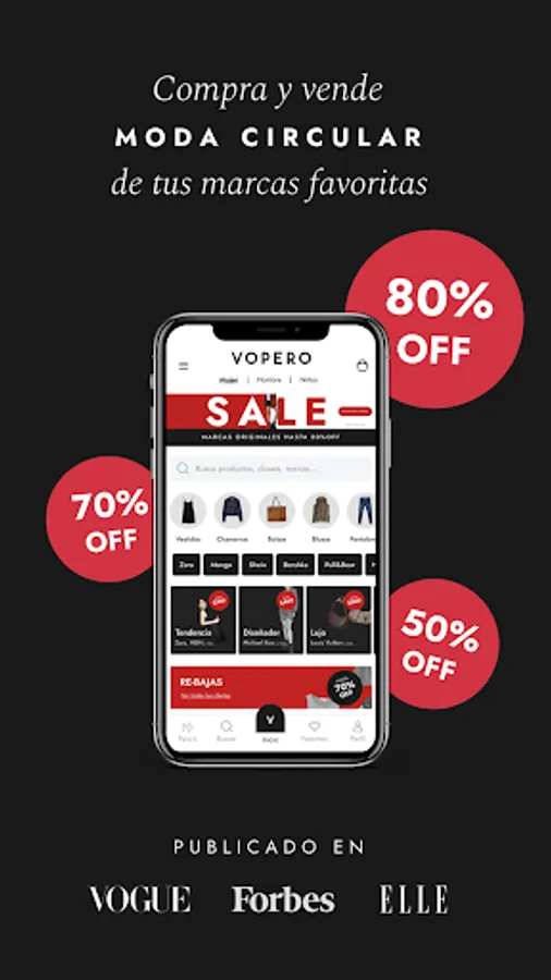 Download Vopero and buy your favorite brands at incredible prices, from Zara to Prada, with up to 80% discount.