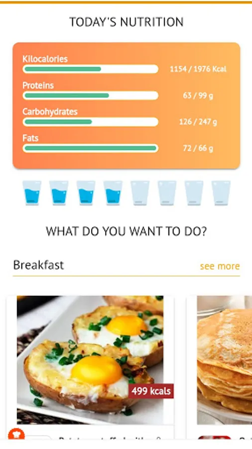 * Ask the chef to show you the amount of nutrients consumed or exceeded today. You can also ask him for food recommendations to complete or level the missing or exceeded nutrients, respectively ("Chef" section).