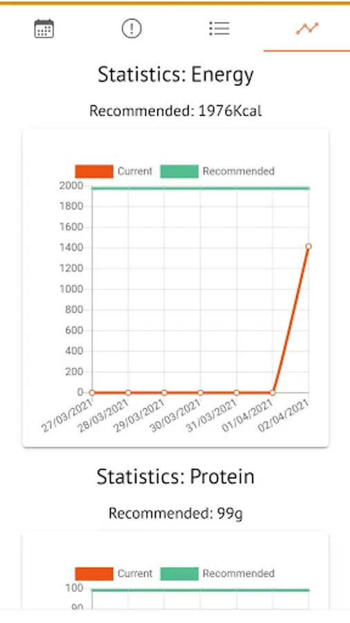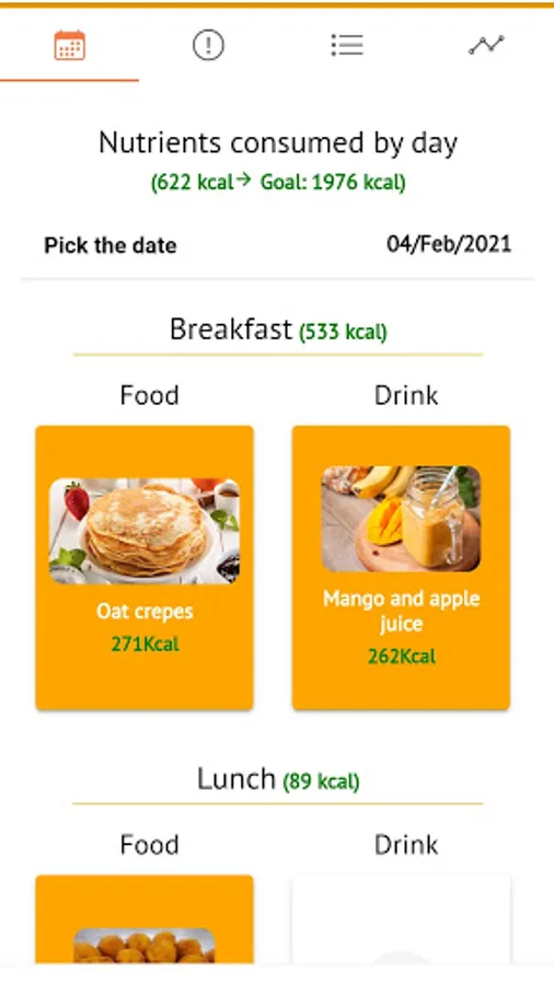 * Record your food intake for breakfast, lunch, dinner, snack, desserts and drinks, so you can review what you have consumed each day and view statistics of your progress ("Nutrition" section).