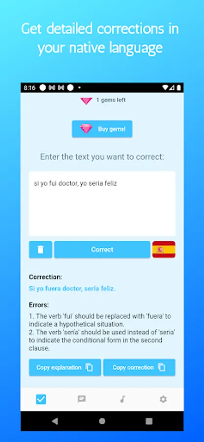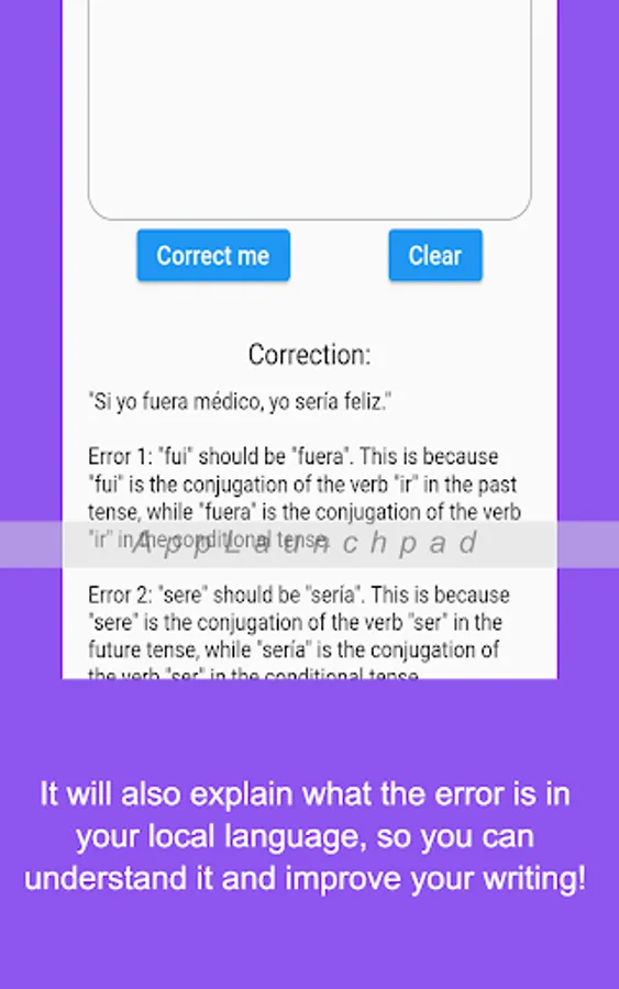 Correct me! is an app that corrects every sentence you enter in any language! and explains the error in your native language so you can learn and improve your language learning.