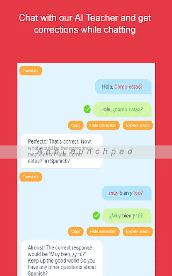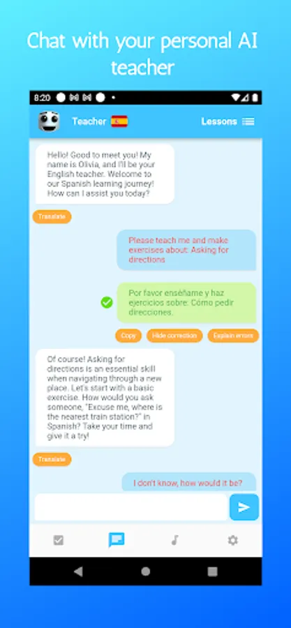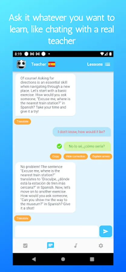 Now you can also chat with our language teacher bot and it will correct you and help you in your learning!