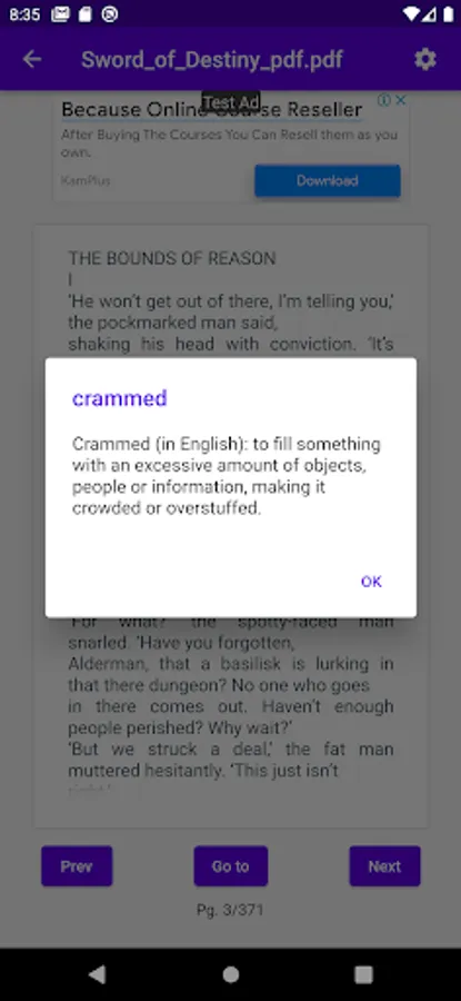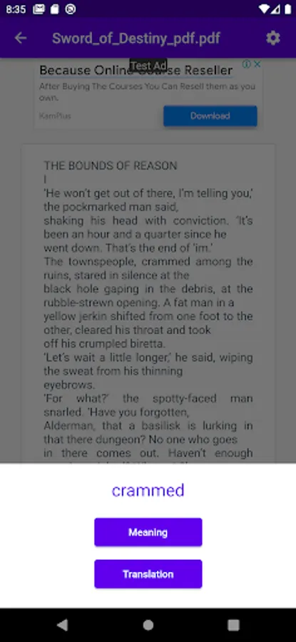 Do you like to read? Do you have to search Google or a dictionary when you don't know a word? Do not lose concentration in your reading looking for words, just add your PDF book, "Tap on any word" and select if you want the meaning or the translation in your native language. Simple, easy to use and very useful! Let's enjoy reading and learn new words together!