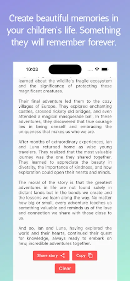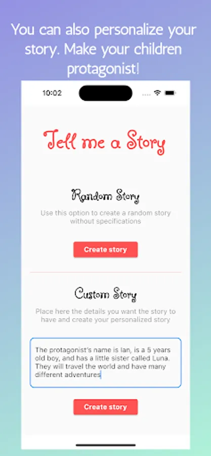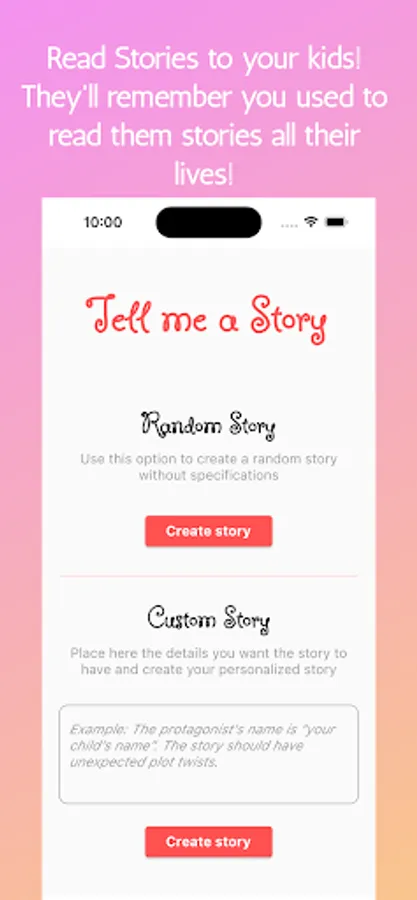 "Tell me a Story" is an application that is capable of creating fantasy stories so that you can tell them to your children. From random stories, to stories where you can lay the foundations of the plot yourself, names of the characters (your child could be the protagonist), or any other specification you can write.