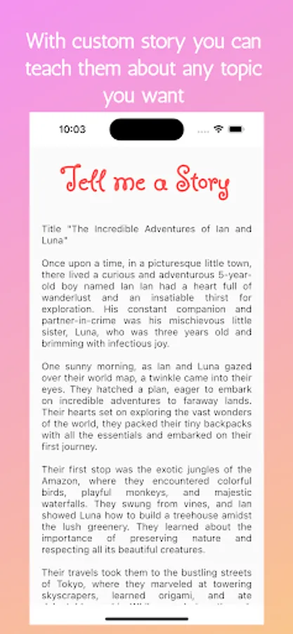 So, start telling interesting and educational stories to your children every day with "Tell me a story"!