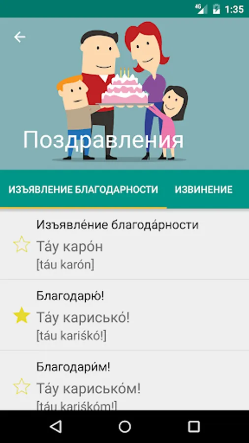 - The "Favorites" - for the most important phrases selected by the user;