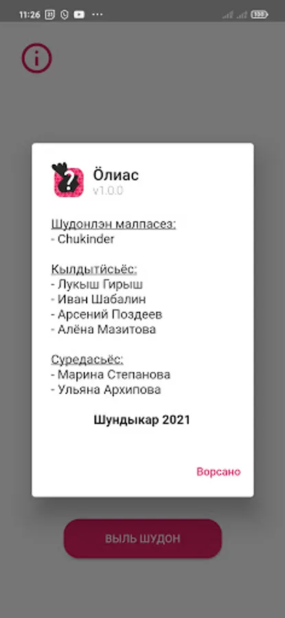 Kapchiez ӝӧk vilyn, shuo kalykyn! Nosh Ӧlias shudonyn kylyos pӧrtem pumo luo: kanyl, shoro-cuspo but seyt! Kylyosles seytlykse achid byryy!