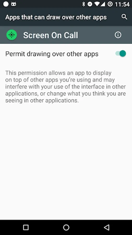 • Permit drawing over other apps - Enable it, so Screen on Call will be able to display floating button and keep screen awake during a call.
