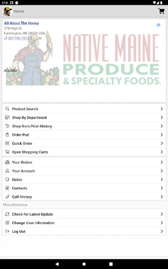 Welcome to the Order Entry app from Native Maine. This app brings you the flexibility of searching our product catalog and submitting orders.