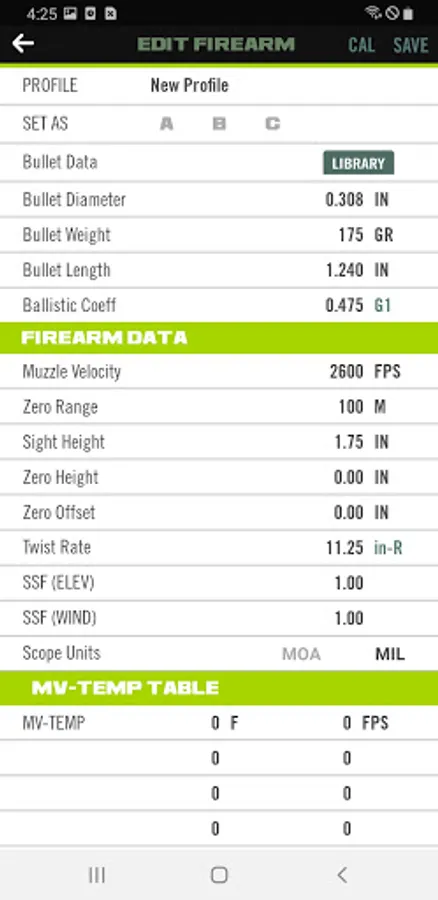 Ballistics® bullet library.