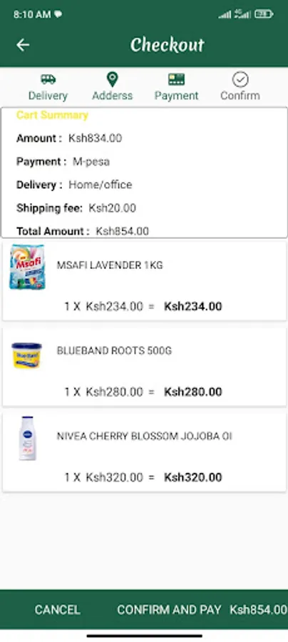 Once you find the products you want to purchase, our app offers a secure checkout process with Mpesa payment process.