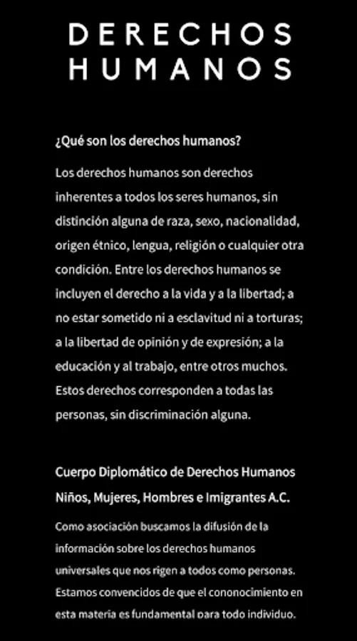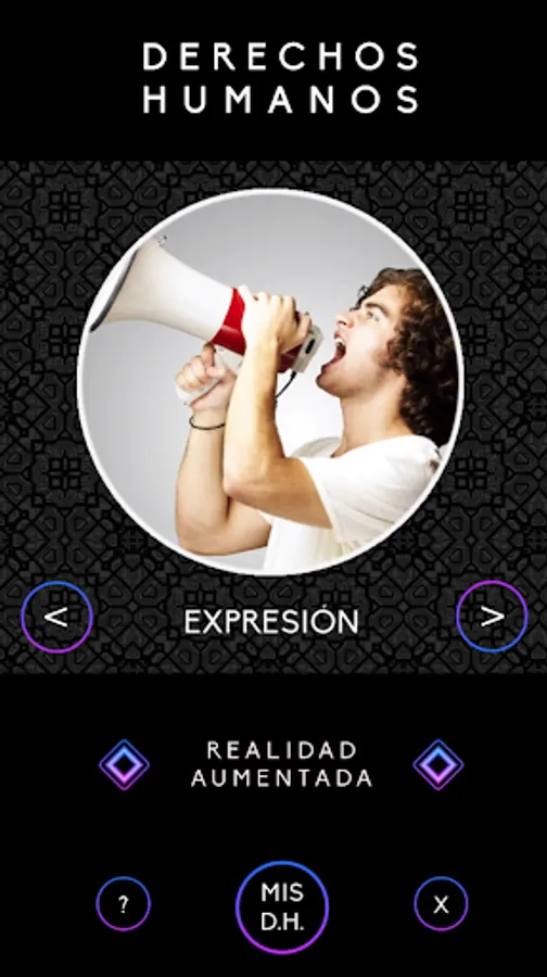 This application will show you the foundations of universal human rights. With it you can interact with the didactic material of the Diplomatic Corps of Human Rights A. C. through augmented reality.
