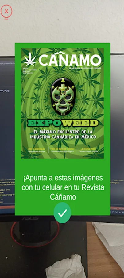 Management of augmented reality for the magazines of Revista Cáñamo México. The user is given the possibility to record the screen and take a photo when a magazine is detected and the 3D model is exposed on it.