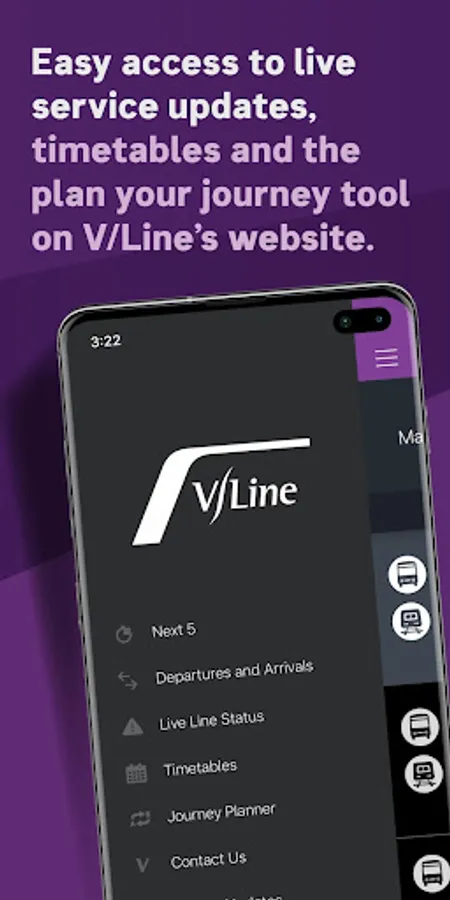• Easily access live service updates, timetables and the plan your journey tool on V/Line’s website.