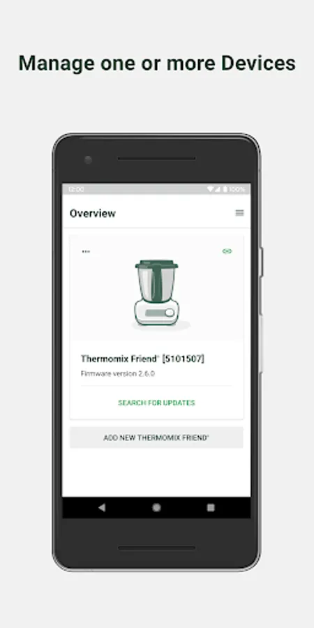 This app will not connect to your Thermomix® TM5 or TM6 devices. The app is only to download and install a new software version for the Thermomix Friend®. Thermomix Friend® is the brand new complementary device to your Thermomix® TM5 or TM6. It will extend your Thermomix® experience thanks to parallel Guided Cooking recipes and save you even more time while preparing food for your family and friends.