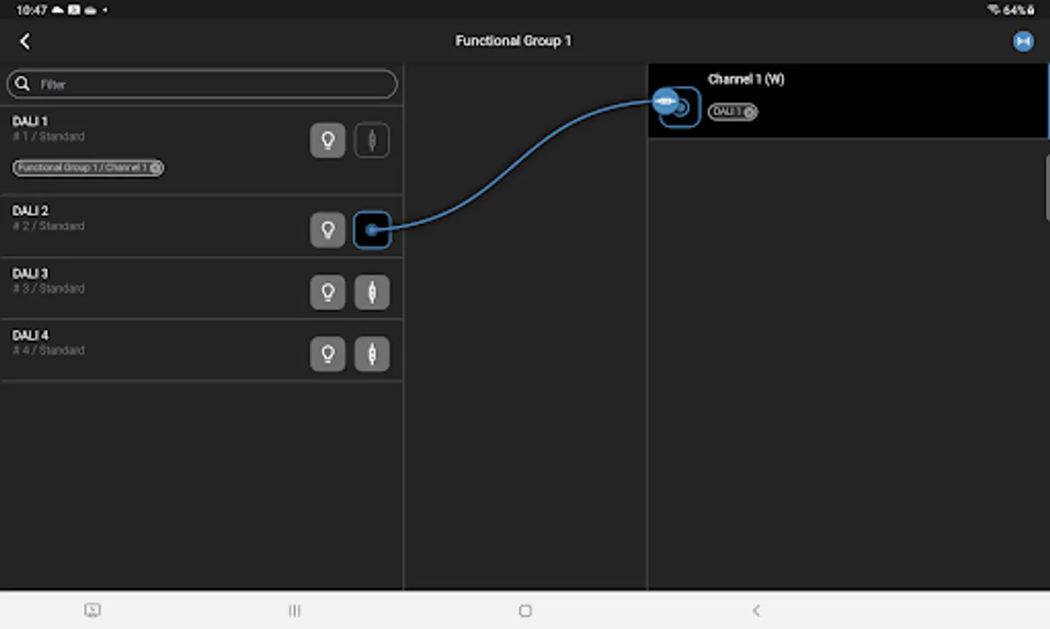 - Up to 64 DALI lighting devices per Blu2Light control unit with DALI connection!