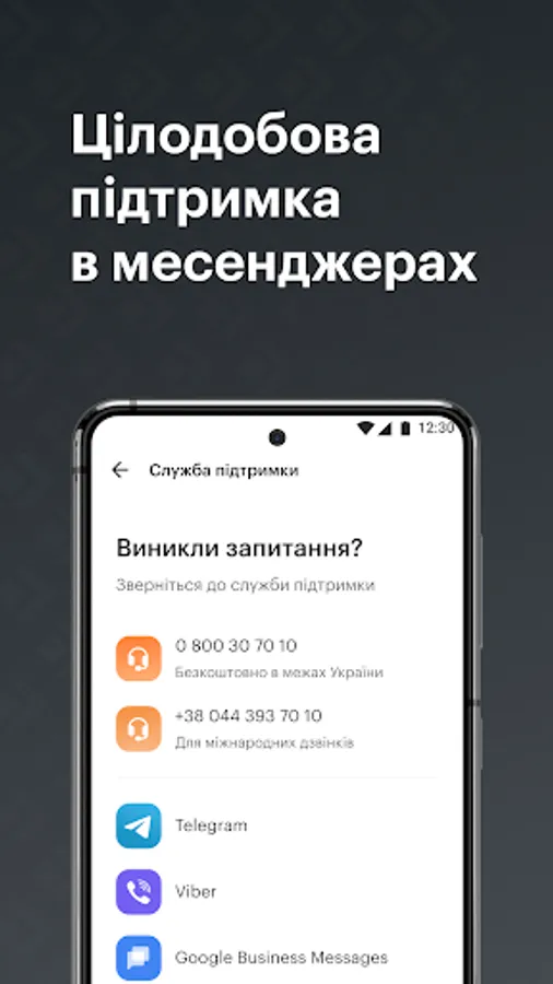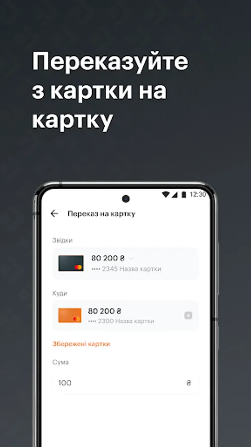 - Card operations: checking the balance, creating a statement, changing the PIN code, blocking the card, reissuing
