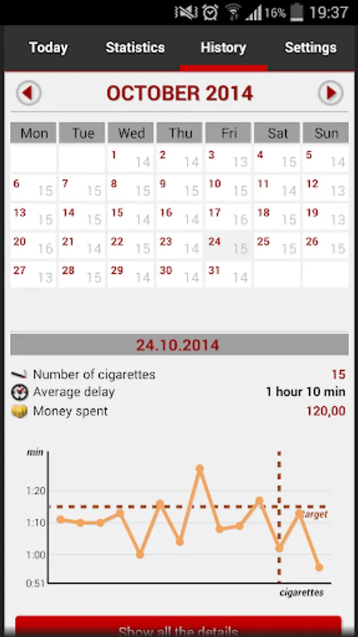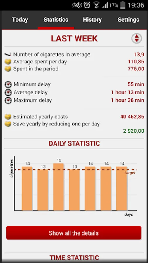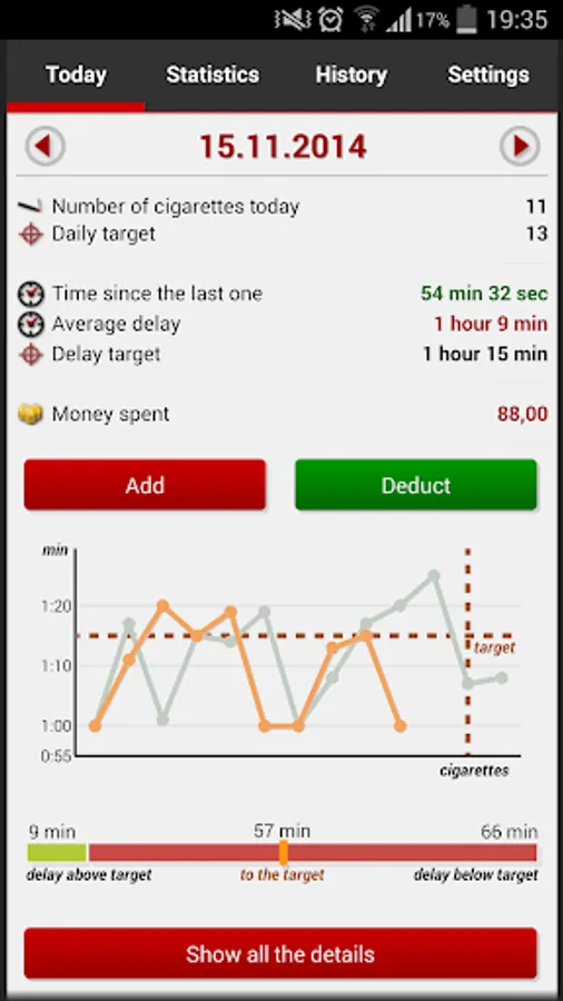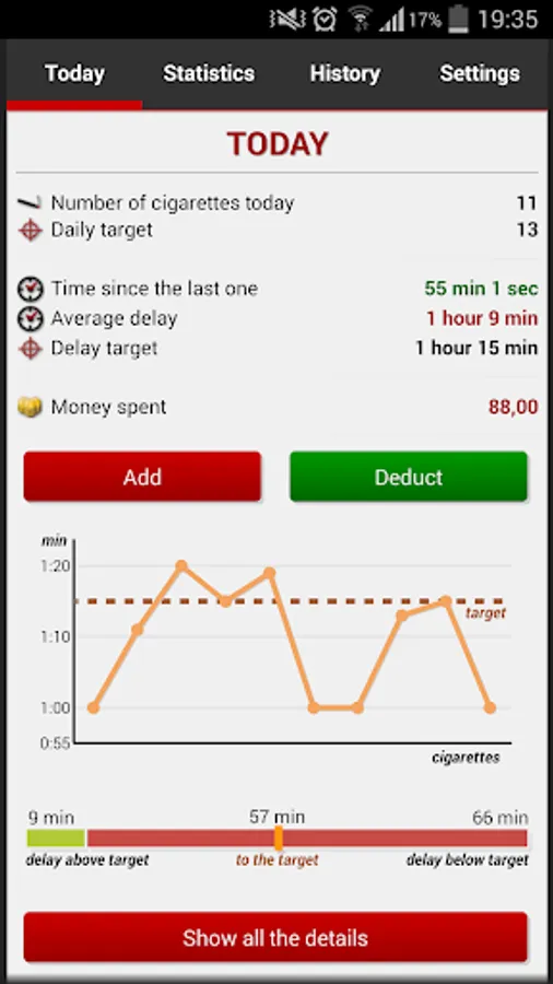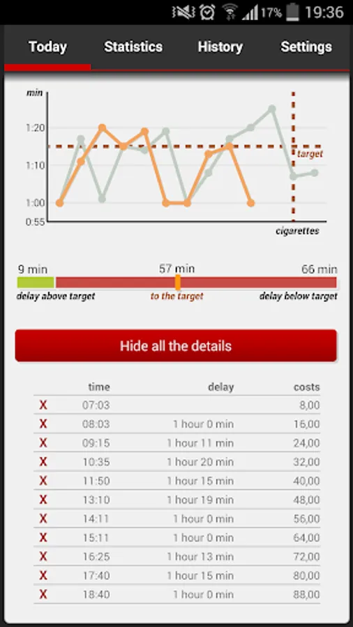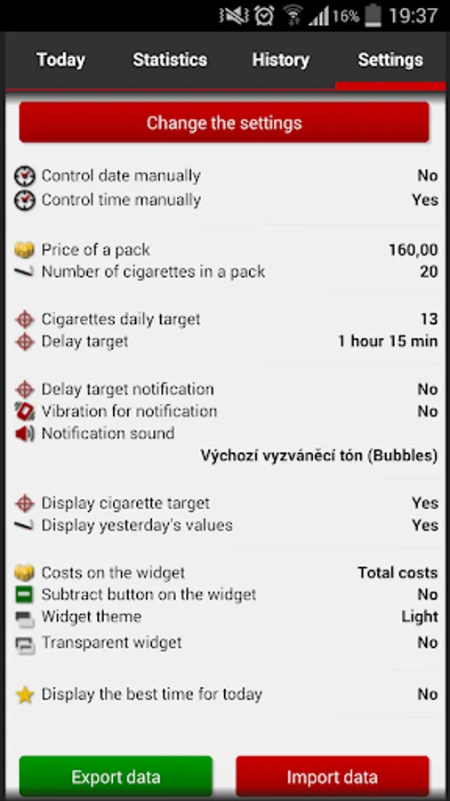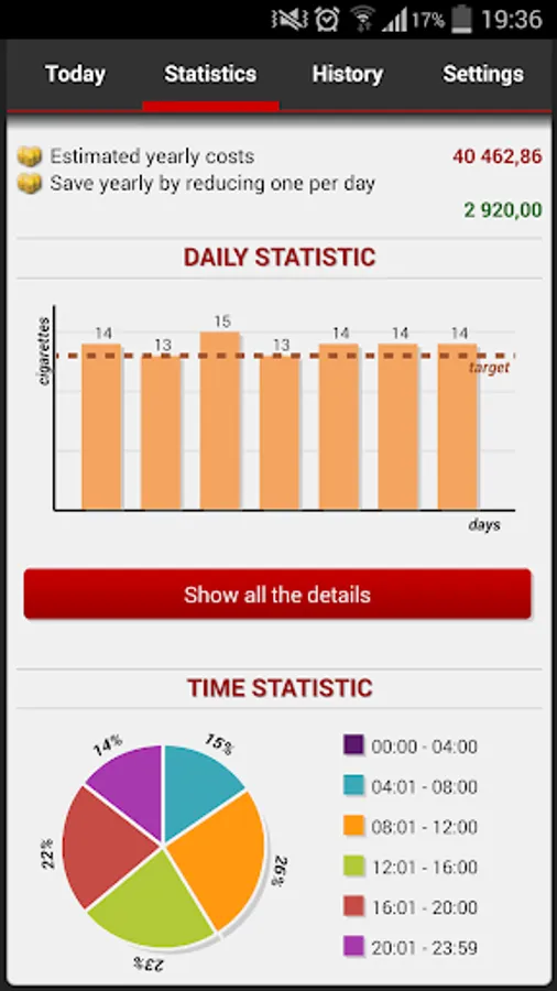 Do you want to reduce the number of cigarettes? Or quit smoking completely? Or just track the amount of cigarettes during the day? Or the costs of your passion? Then this application will be big help for you.