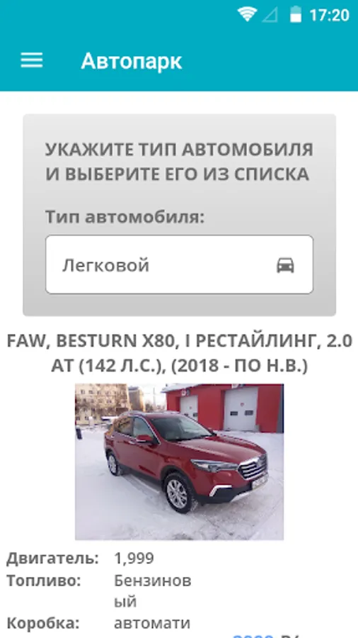 Using this application, you can rent a car of the following categories: passenger car, SUV, commercial and truck.