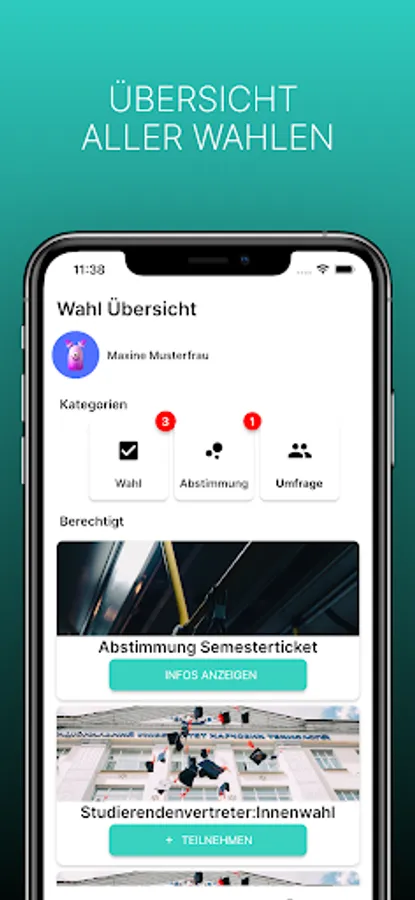 VoteBase Scholar is the app for universities and technical colleges. It helps you to safely take part in all elections, polls and surveys at your university or technical college. At some universities, additional features have been released for students to make surveys for bachelor's and master's theses easier and more efficient.