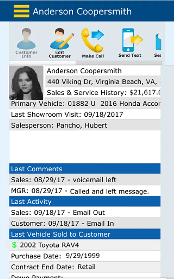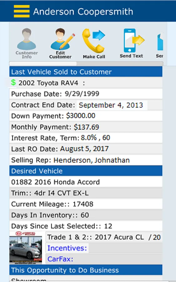 * Last Vehicle Sold to Customer (Year, Make, Model)