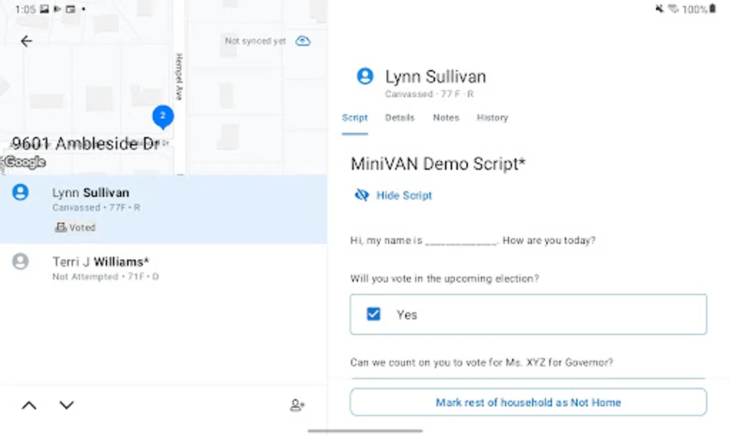 miniVAN is a mobile canvassing application that integrates with websites provided by NGP VAN. The miniVAN system allows users to export canvassing lists from VAN onto an iOS or Android device. Canvassers can then enter data into their device as they talk to people on their list. When the canvassers connect their device to the Internet over a wireless or cellular network, they can upload their data back to the VAN with the touch of a button. Administrative users on the VAN can then review the data and apply it to the database in one quick step.