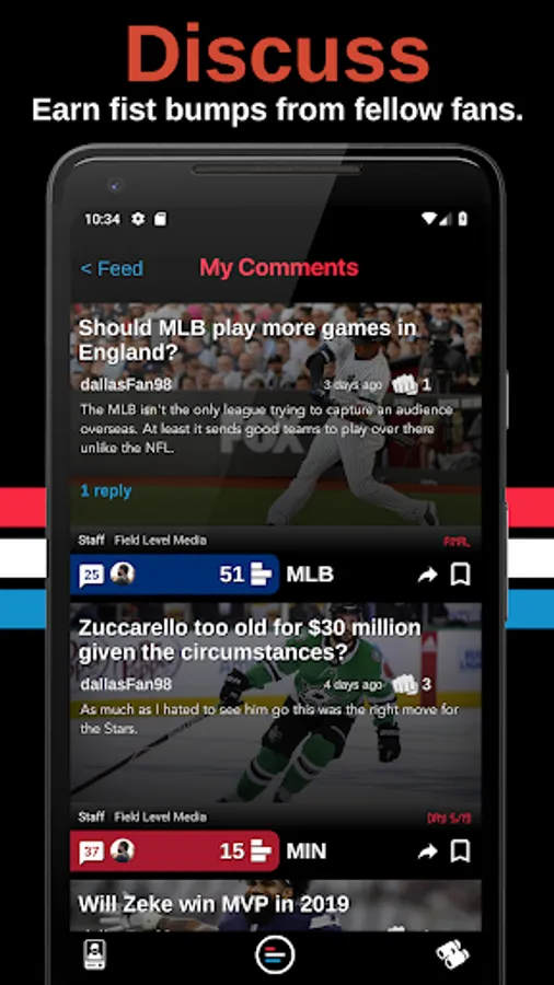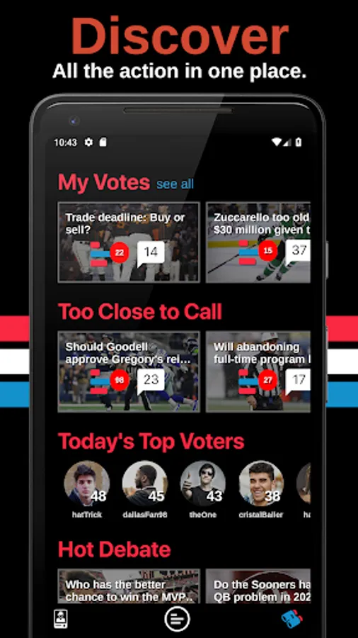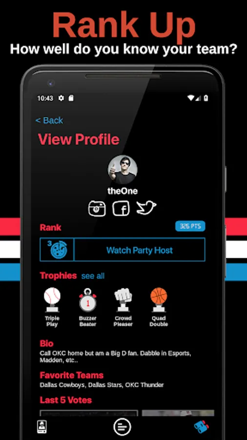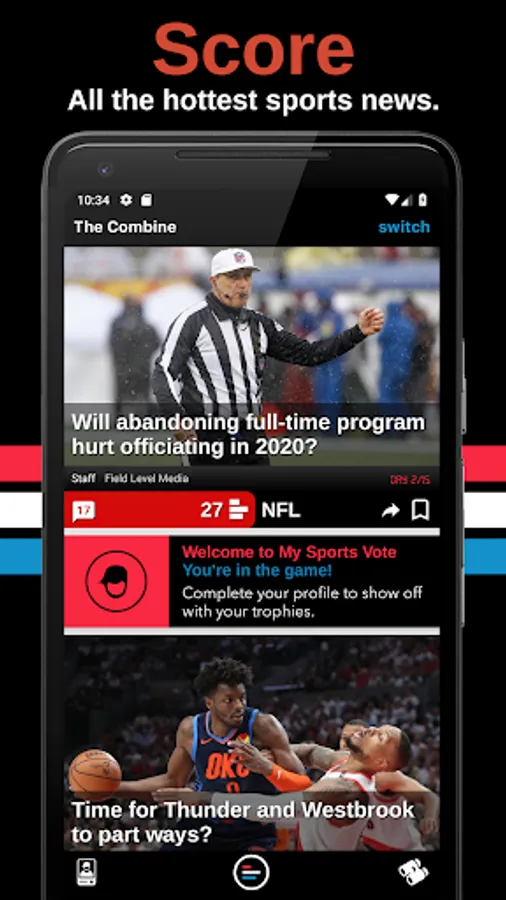 You’re rewarded for your knowledge by gaining notoriety as you rank up. Earn points by participating in polls, predicting outcomes and completing trivia. All of this while scoring the hottest sports news across the NFL, NBA, NHL, MLB, and NCAA.