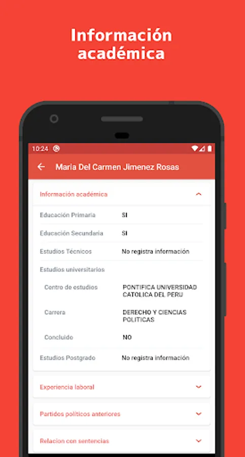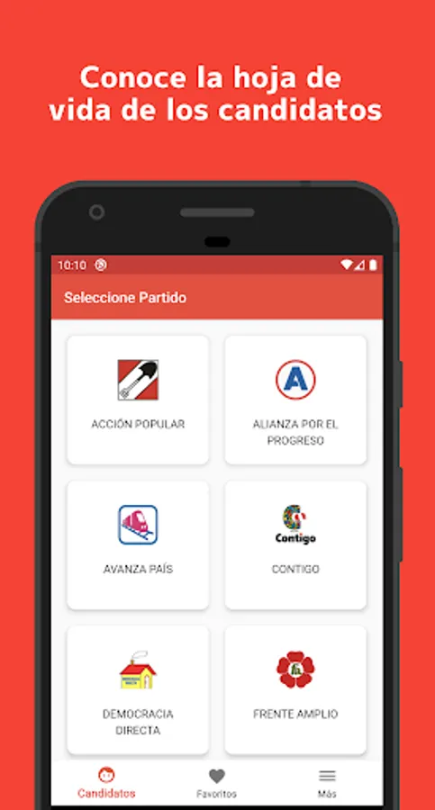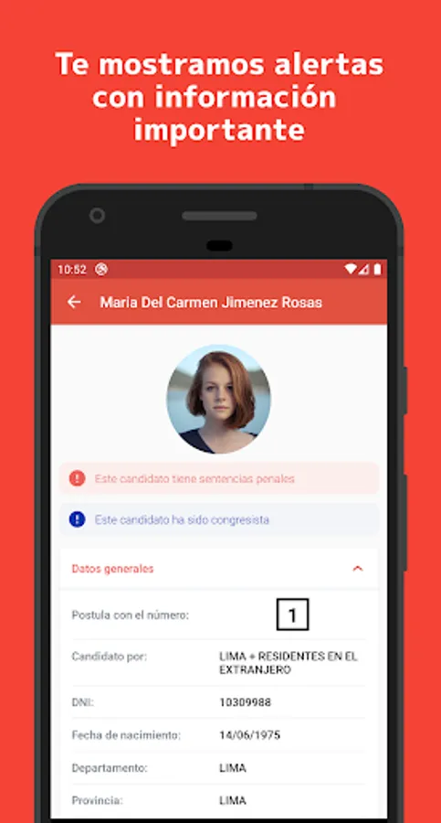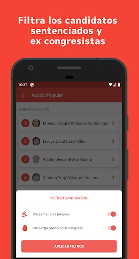 The pilot plan of the application only shows the candidates of Metropolitan Lima