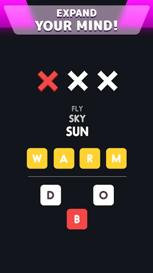 Want to test your mind for the duration? In Secret Word mode you will have 3 chances to guess each word with the letters and clue provided. Push your word association skills to the limit, and guess each word before moving on to the next. Guess wisely, 3 incorrect guesses and you will have to start over!