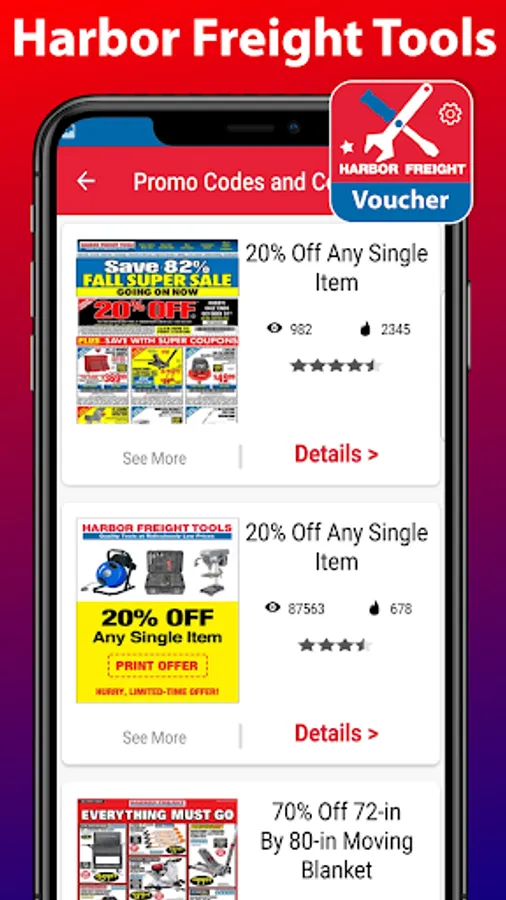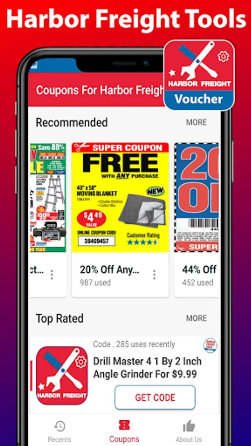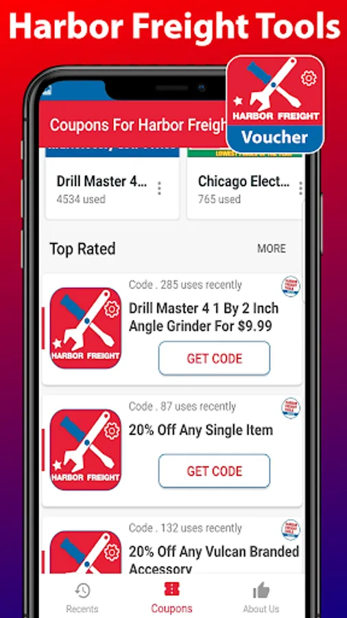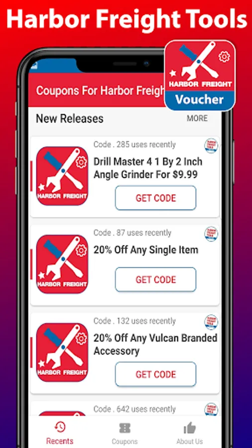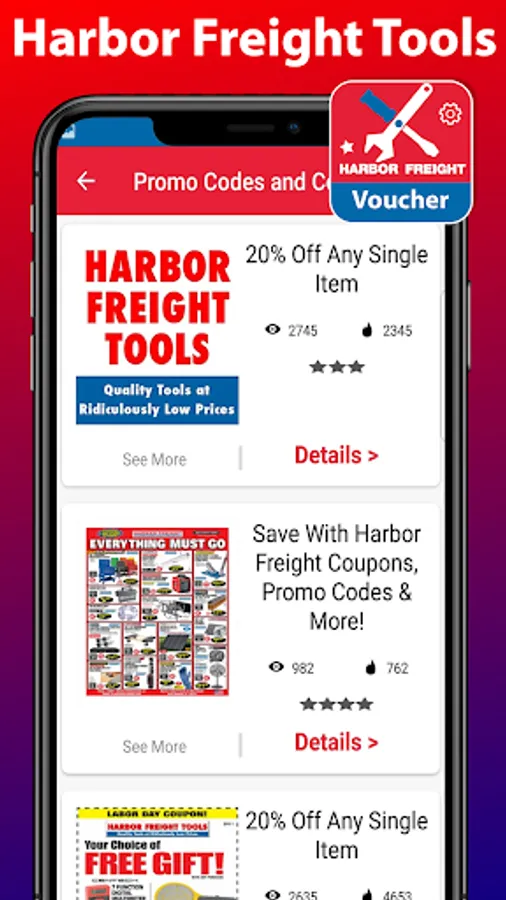 You can search Harbor Freight coupons from this app. Add your favorite coupons into the shopping list.