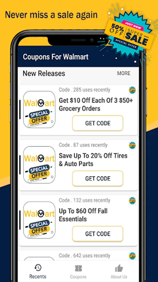 Enjoy the Walmart coupons app are published once Walmart announces a new discount code for a specified category or brand or a sitewide purchase.