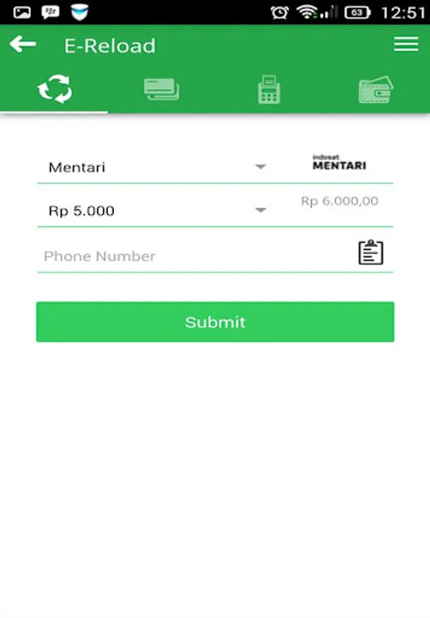 Prepaid Top-up : Telkomsel, Indosat, XL, Axis, Three, Esia, Smart