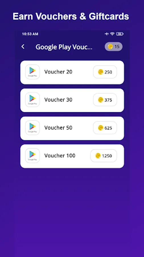 No need to spend money! Just download this app and start earning today. You can redeem your points for Play gift cards of any denomination.
