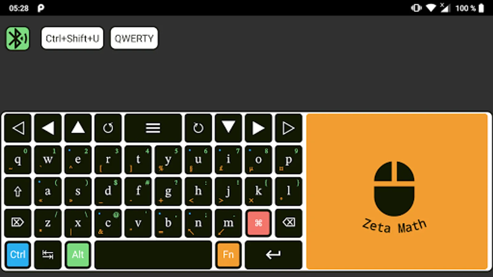 We started writing a simple math editor, then we realized that writing math symbols was boring on Android. We also realized that writing a system keyboard for Android could make us happy, because all the existing ones was not so useful, so we did it. With a pretty system keyboard, we realized that the remaining steps in order to have a fully functional Bluetooth keyboard was not so many. So, here is Zeta Math