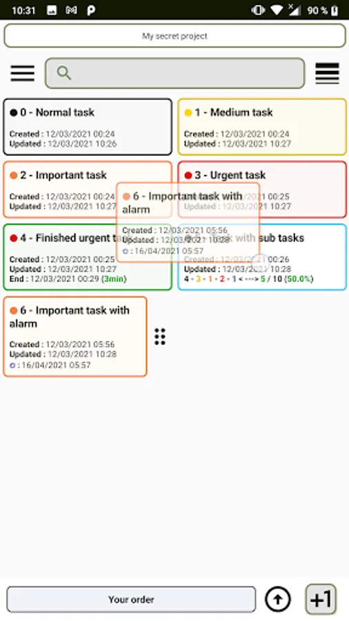 SplitTask ermöglicht es Ihnen, Ihre Aufgaben mit 4 farbigen Prioritätsstufen (Normal, Mittel, Wichtig und Dringend) zu organisieren und zu ordnen. Sie haben 4 Standard-Aufgabenschritte (Machen, In bearbeitung, Getan, Mülleimer), Sie können auch Ihre eigenen hinzufügen.