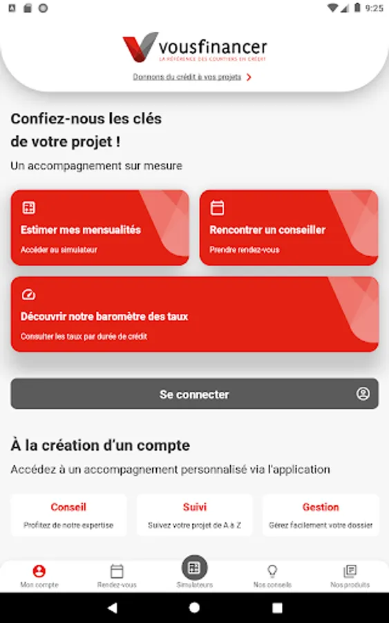 This application allows you to quickly and easily perform credit simulations to estimate legal fees and find your broker near credit. Our business contributors can also use this application to transfer contacts us securely.