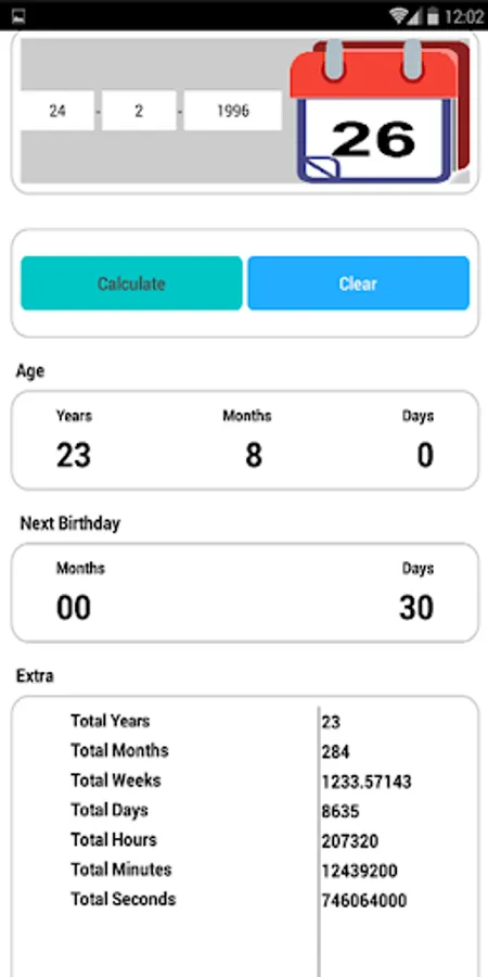 Age calculator feature is android apps in terms of seconds, minutes, hours, days weeks, and years with one click. Age calculation formula will auto calculate your exact age, accurately calculating the age of any user. all you need in order online or offline mode to calculate a persons age is their birth date, and next birth date.