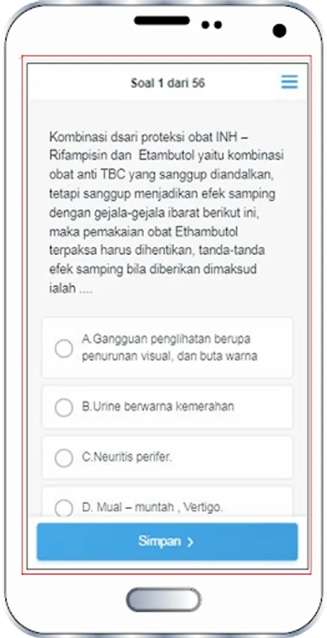 This application is an example of a D3 Pharmacy Competency Test (UKOM) and its answers and discussion. it contains a grid around the ukom exam for D3 Pharmacy students who will face a competency exam for passing or exit exam.