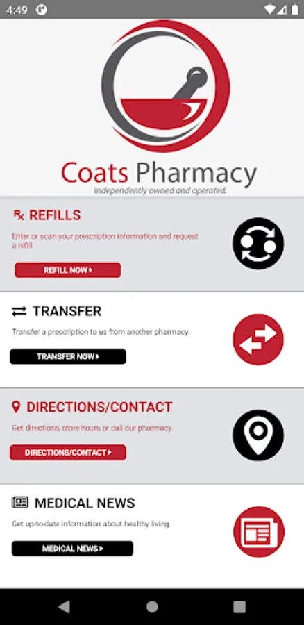 Coats Pharmacy makes refilling your prescriptions convenient and quick with the use of this app on your device.