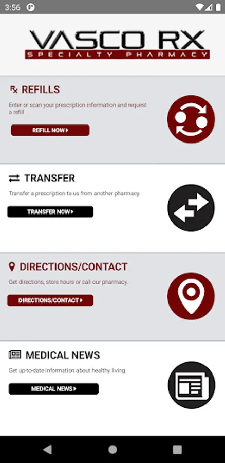 Vasco Rx makes refilling your prescriptions convenient and quick with the use of this app on your device.