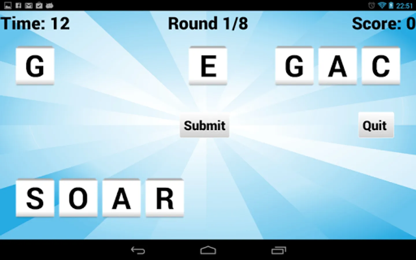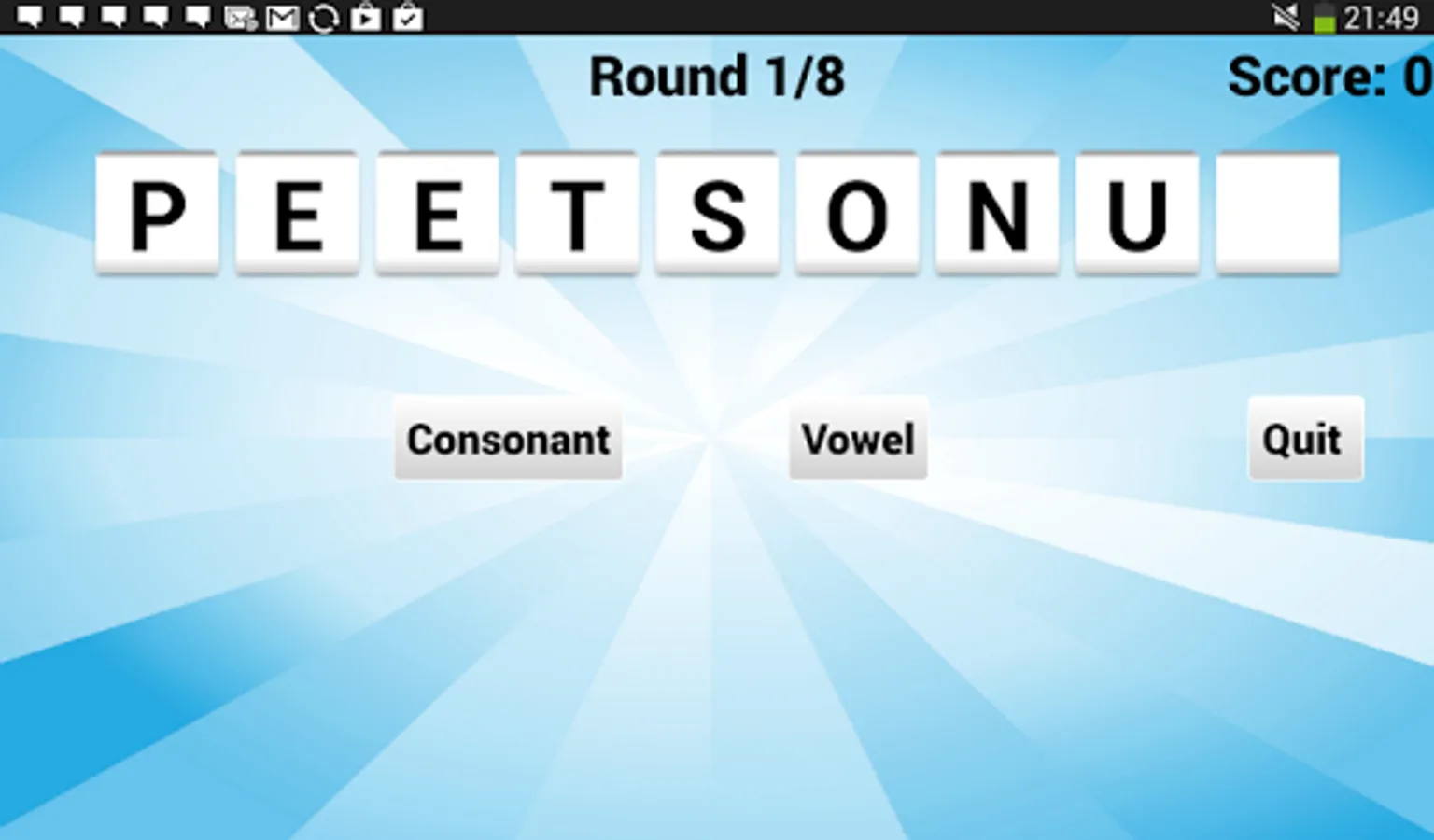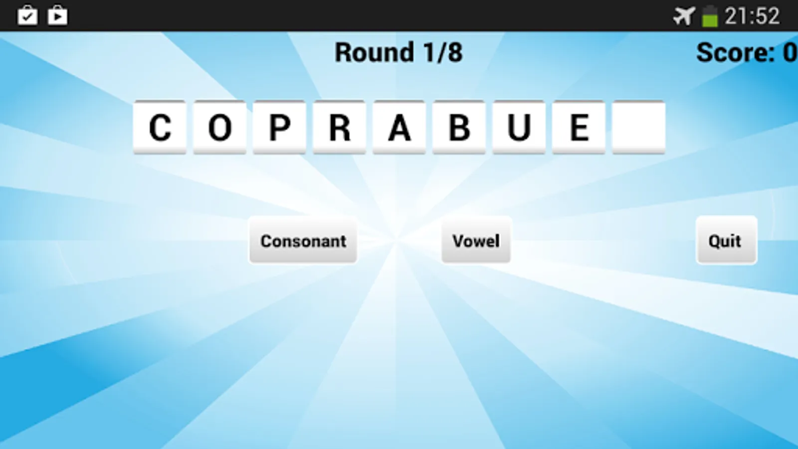 -Make a word using as many of the 9 letters as possible before the 30 second timer finishes.