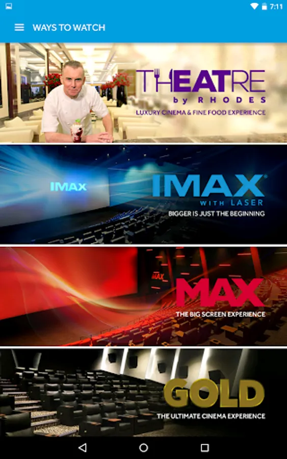 · IMAX - Book tickets for these massive, state-of-the-art movie theatres where the curved screens offer an immersive movie experience.