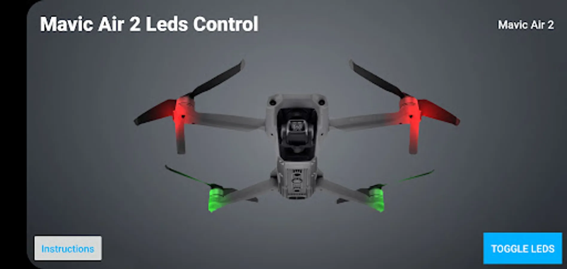 This app allows you to turn on or off the leds of your mavic air 2