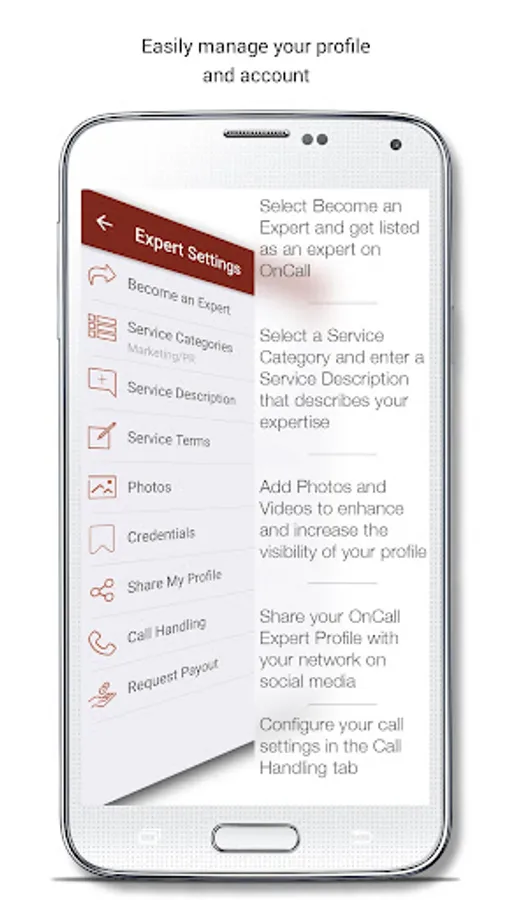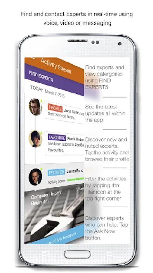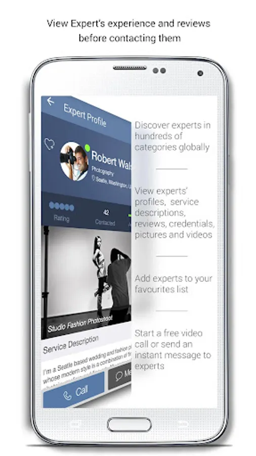 OnCall users can access experts live through video, audio and instant messaging, you can rate and review their experience, and even pay the expert through the app directly if a fee is required.