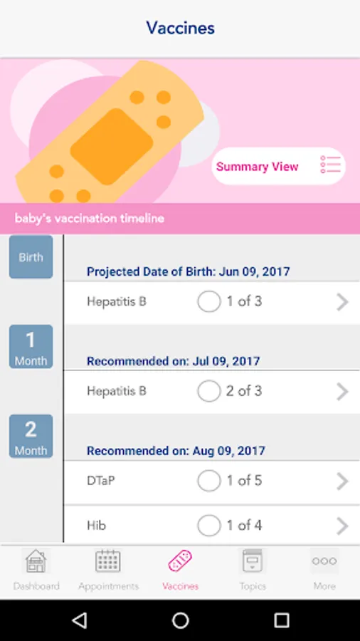 • Vaccination tracker to help you stay on top of baby’s life-saving vaccinations