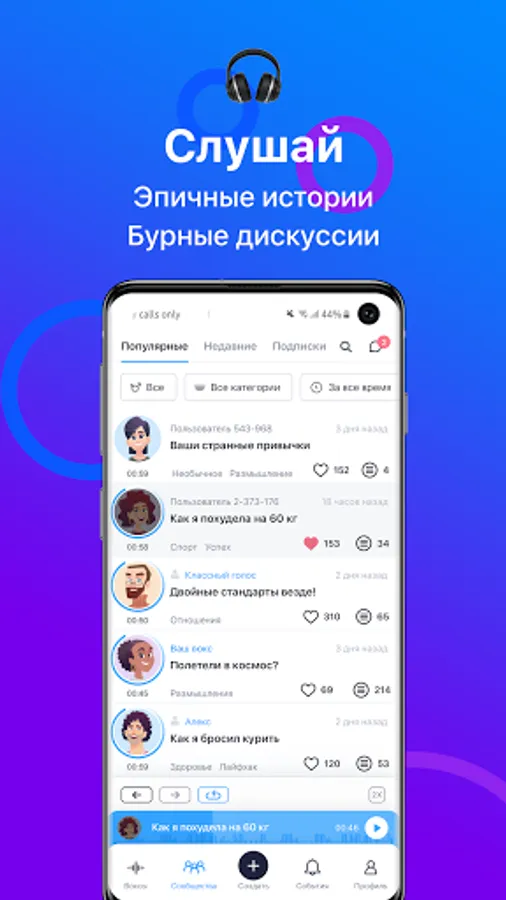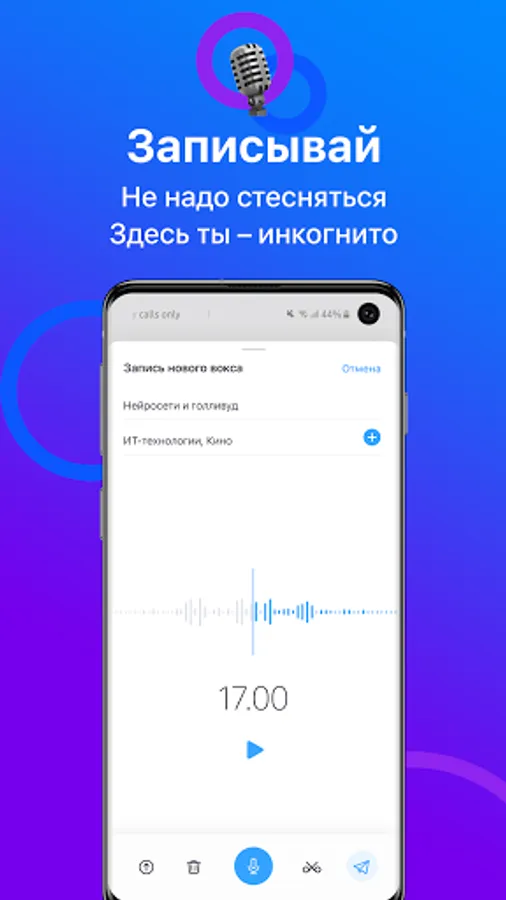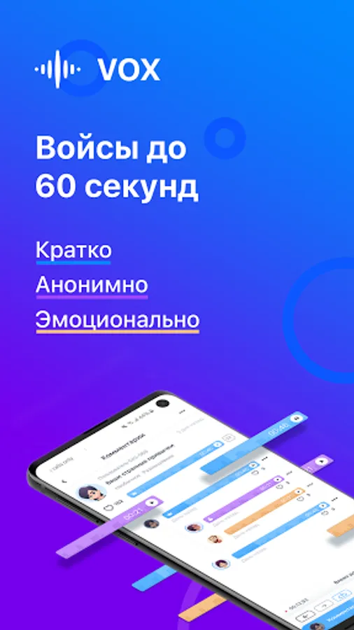 Tell and listen, comment and get feedback, meet, but stay anonymous - this is the voice social network of short voice messages Vox Social.