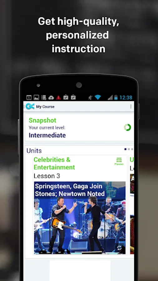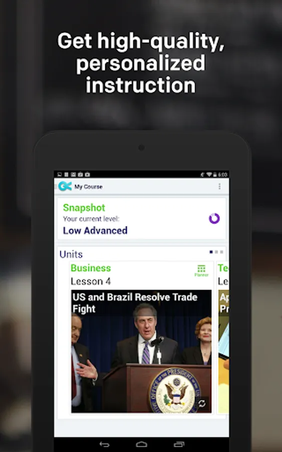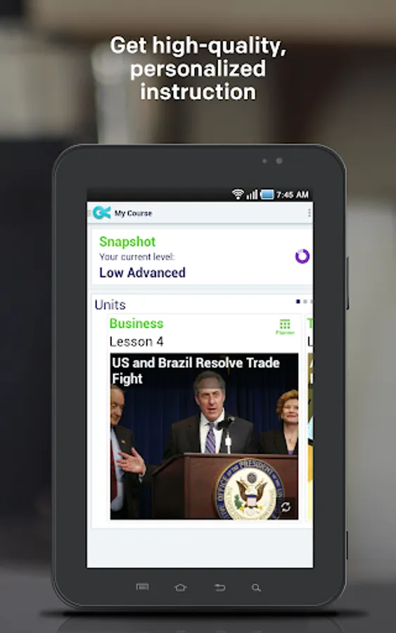Rather than teaching phrases that are not relevant to our learner’s needs like “Janie kicks the ball”, we deliver real English content that is updated daily. Voxy’s learners study in context with videos of people accomplishing daily tasks, audio recordings of real-life situations, karaoke-style music lessons and up-to-date news stories from leading media companies like the Associated Press.