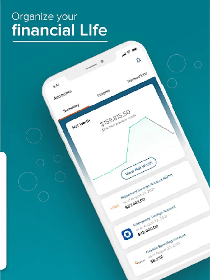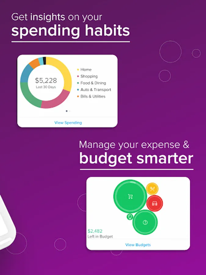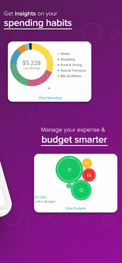 • Organize your financial life: connect your checking and savings accounts and credit cards to get a clear view of everything you owe and own