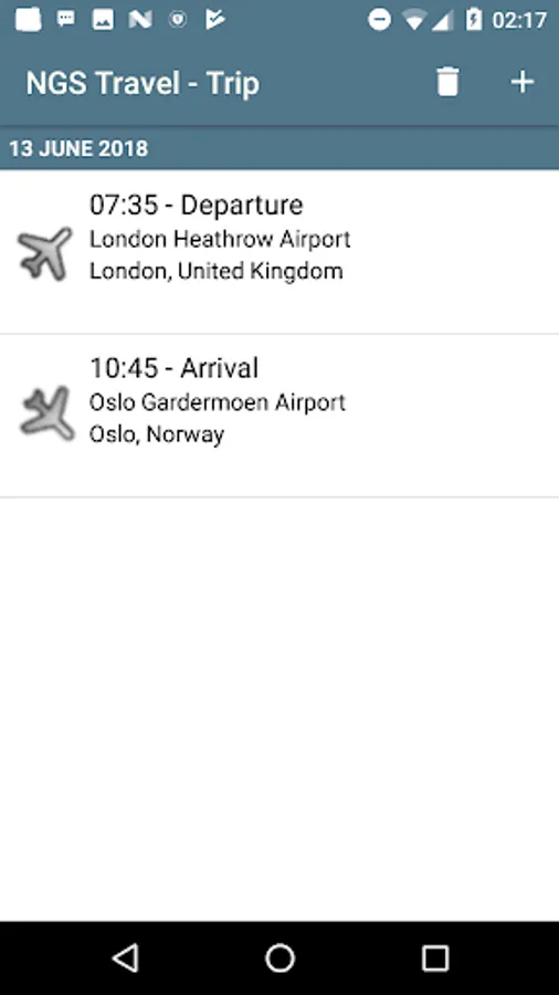 The app synchronizes automatically with the NGS Voyage platform, automatically giving you the latest updates to your itineraries. You can also add your own segments through the app. On the home screen you will always see the next trip segment, giving you instant information about what your next activity is.