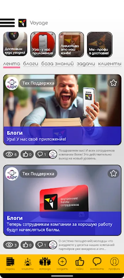 A mobile application that is a corporate portal for interaction between colleagues and employees.