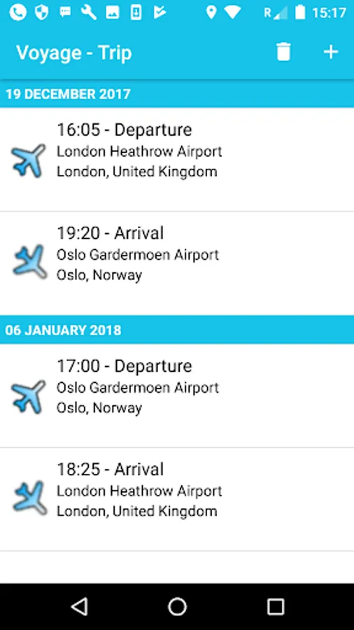 The app synchronises automatically with the Voyage Manager cloud platform, giving you the latest updates to your itineraries automatically. You can easily add and manage your trips and trip segments through the app.